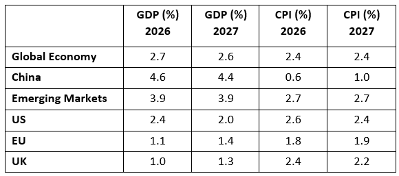 Thanks, as ever, to our friends at Schroders for the latest consensus forecasts, which are as of 3rd February 2026 (note these were produced before the recent Iran war):